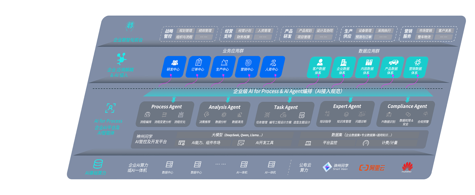 端到端的一站式AI工作空间深度融合了从企业战略规划到日常经营的全流程业务板块,,,定向解决车企内部领域多、、、部门多、、、链条长、、、、场景碎片化等难题,,,支持车企快速构建以AI为核心的生产力写作体系,,,,实现任务执行与AI能力的无缝集成与交互